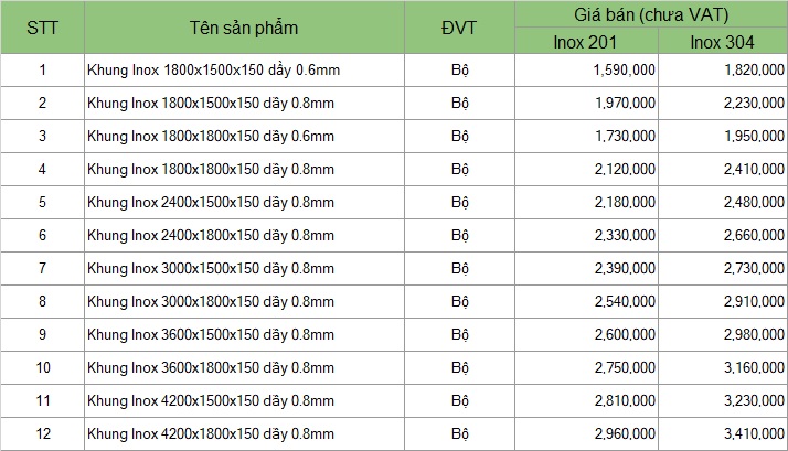 Khung inox 201_1800x1500x150 dầy 0,6mm