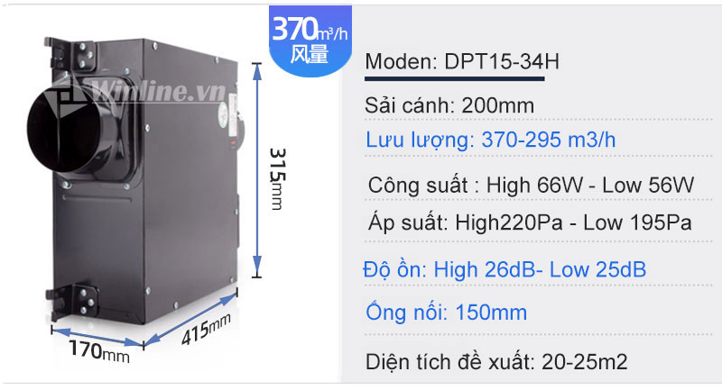 THÔNG SỐ KỸ THUẬT QUẠT CẤP KHÍ TƯƠI NEDFON DPT15-34H