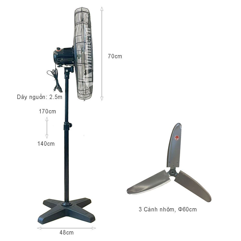 động cơ quấn bằng dây đồng, Lồng sắt sơn đen, cánh nhôm 4 lá cánh, có lưu lượng gió lớn , độ ồn thấp. với công suất 172W. thuộc nhóm những quạt công nghiệp có công suất trung bình