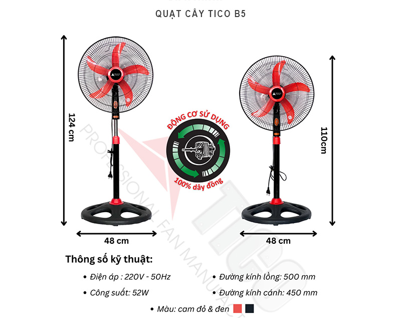| Tên sản phẩm | Quạt cây Tico B5 |