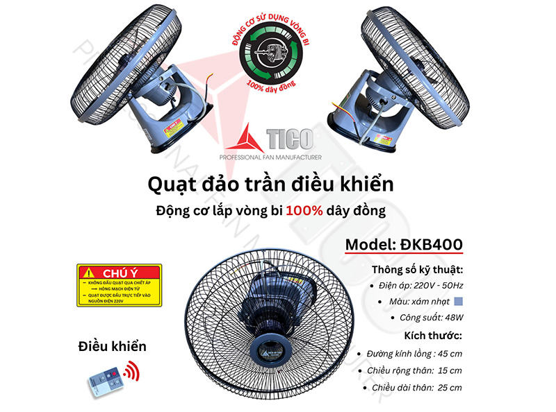 | Tên sản phẩm | Quạt đảo trần Tico B400 có điều khiển |