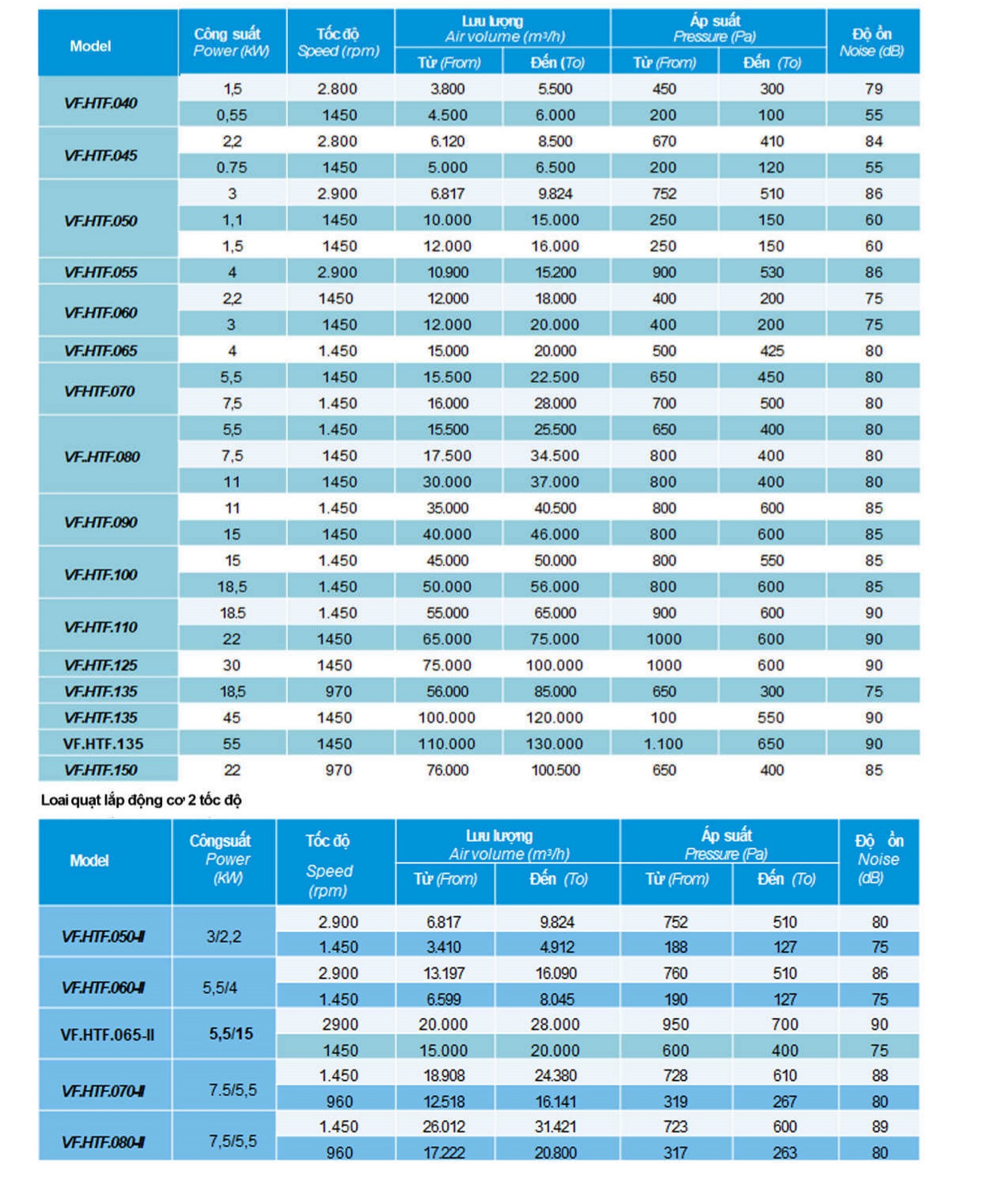 Thông số kỹ thuật: Quạt chống cháy chịu nhiệt