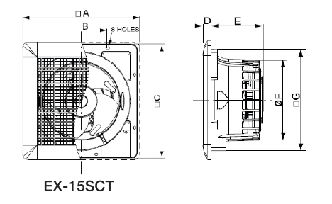 Kích thước lắp đặt Quạt hút âm trần Mitsubishi EX-15SC6T không nối ống
