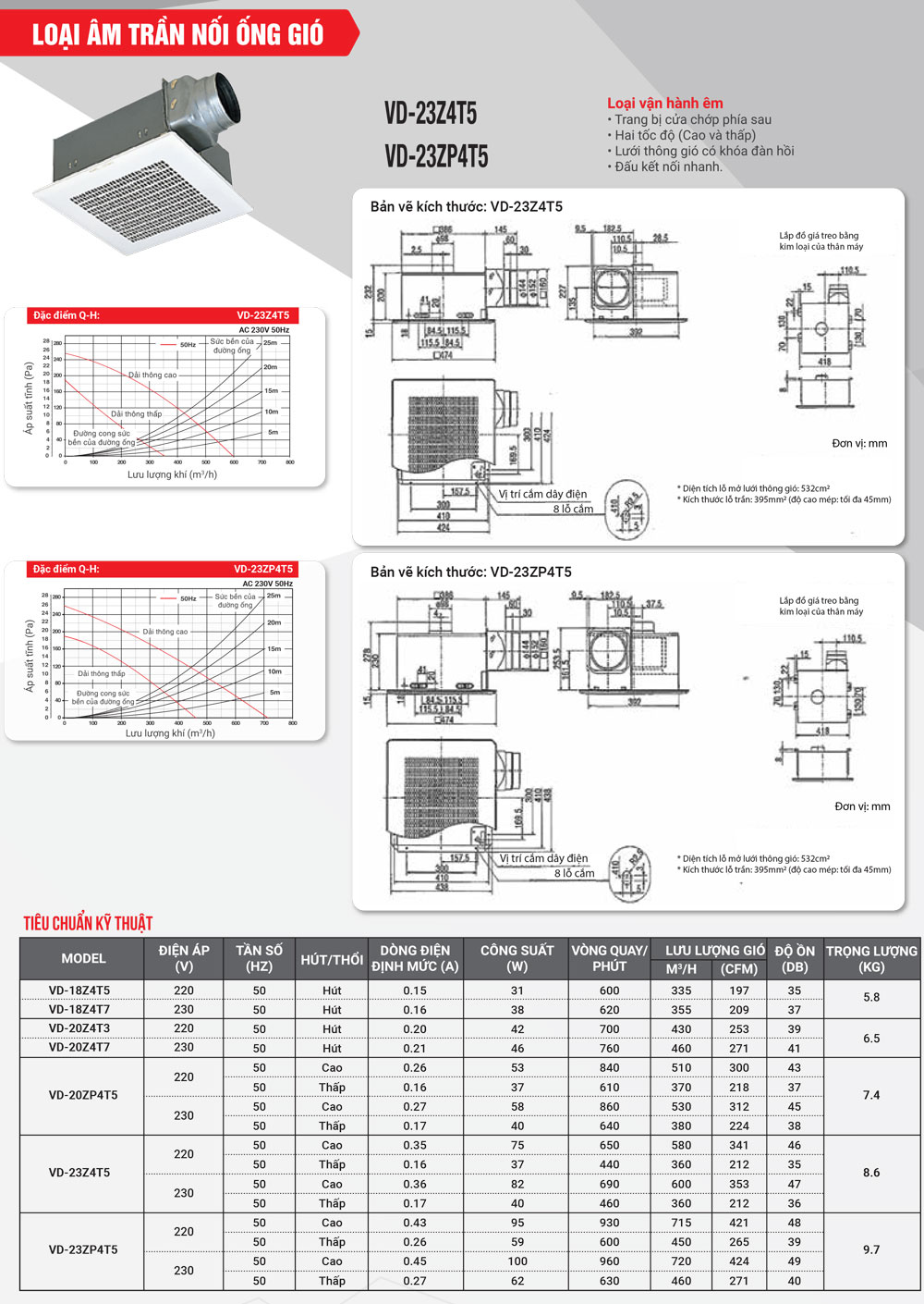 Điểm nổi bật của Quạt hút âm trần Mitsubishi VD-23Z4T5