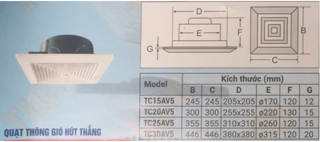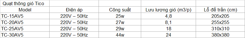 | Tên sản phẩm | Quạt hút âm trần TICO T TC-15AV5 |