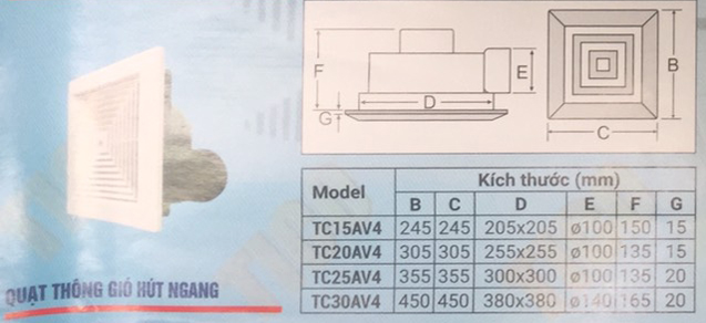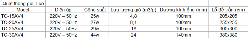 | Tên sản phẩm | Quạt hút âm trần Tico TC-30AV4 |