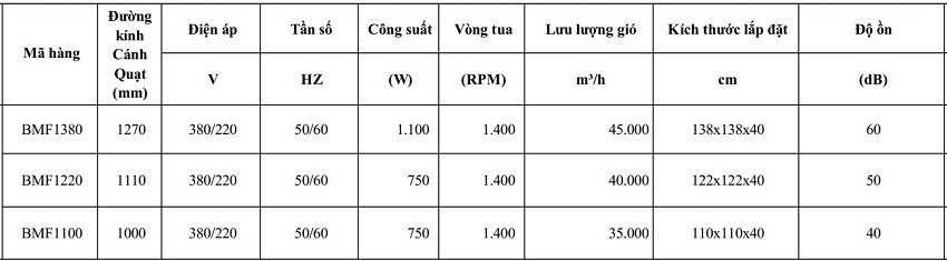 Quạt hút công nghiệp BMF-1220PA Hiệu suất cao được trang bị cửa chớp: làm bằng inox 304 có độ bền cao, cơ cấu búa thả đóng-mở giúp quạt đóng và mở các cửa lá được hoàn toàn, góc mở 90 độ được duy trì để đảm bảo các cửa lá chắn được gió, mưa và bụi, mô tơ: dây curoa dẫn động kiểu V, hiệu quả năng lượng cao, đạt tiêu chuẩn 3C, Motor đạt IP54, cách điện.