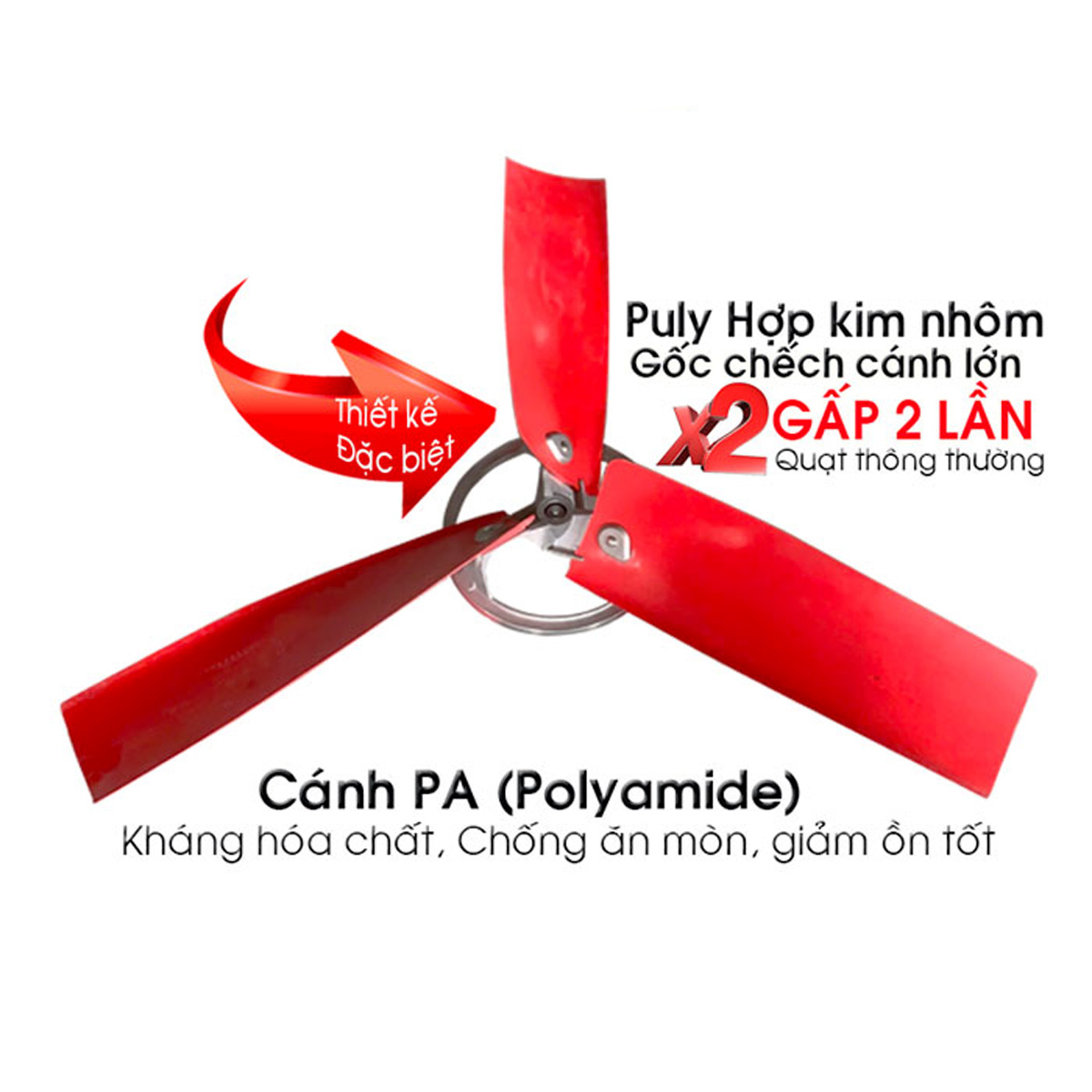 Cánh: sử dụng Cánh 3 lá, chất liệu PA (Polyamide) Bền bỉ, không rỉ