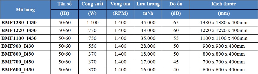| Tên sản phẩm | Quạt hút công nghiệp BMF |