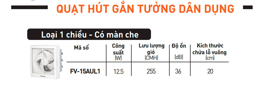 | Tên sản phẩm | Quạt hút gắn tường Panasonic FV‑15AUL1 |