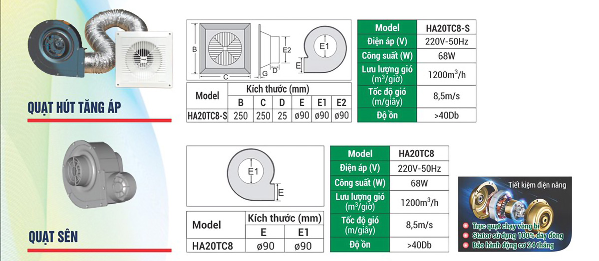 | Tên sản phẩm | Quạt hút Sên Tico HA20TC8 |