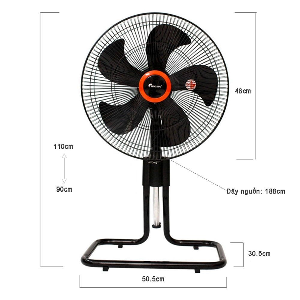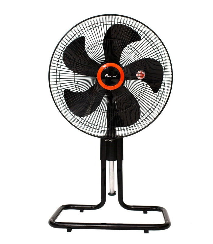 Quạt sàn chinghai FF2317, Lồng sắt, chất liệu cánh bằng nhưa, bản rộng, chân đế bằng sắt sơn tĩnh điện chắc chắn, vỏ bầu quạt bằng nhựa, Quạt có màu đen toàn thân