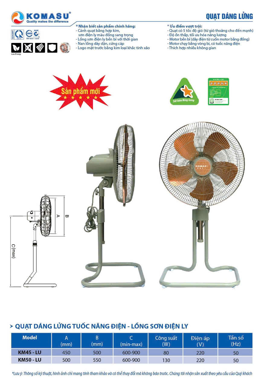 | Tên sản phẩm | Quạt sàn lửng Komasu KM-45LU |