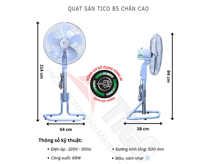 | Tên | Quạt sàn Tico B5 chân cao |
