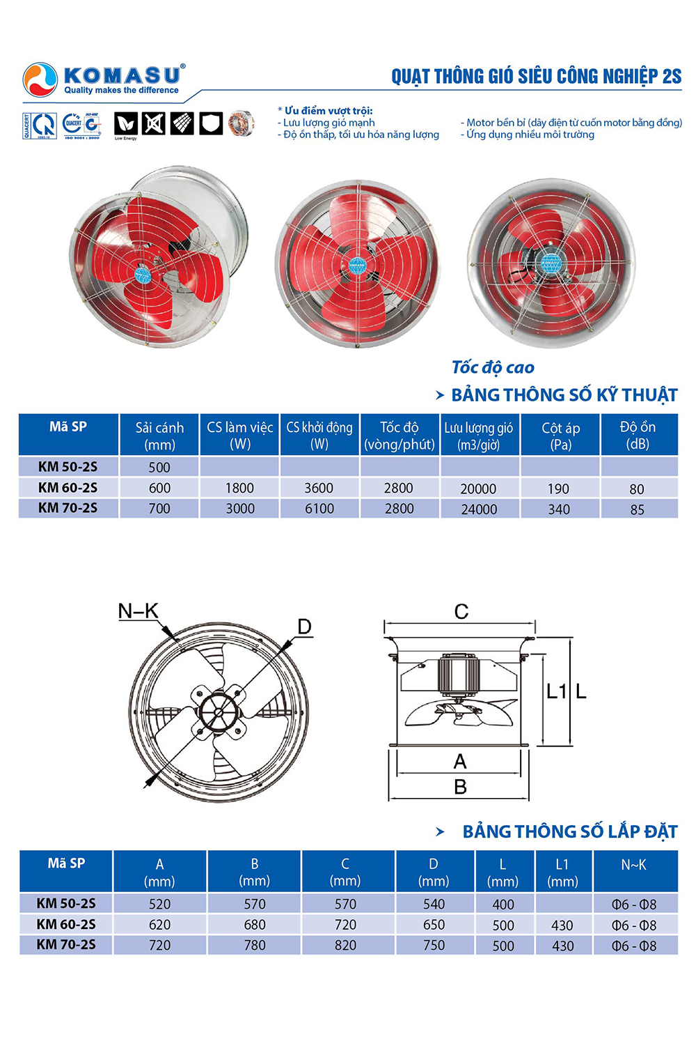 Quạt thông gió công nghiệp Komasu KM-60-2S