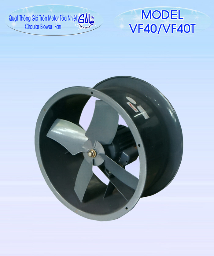 Quạt thông gió công nghiệp tròn Gale VF40 vỏ mô tơ khía, 4 lá cánh, thuộc nhóm quạt thông gió công nghiệp tròn công suất nhỏ,