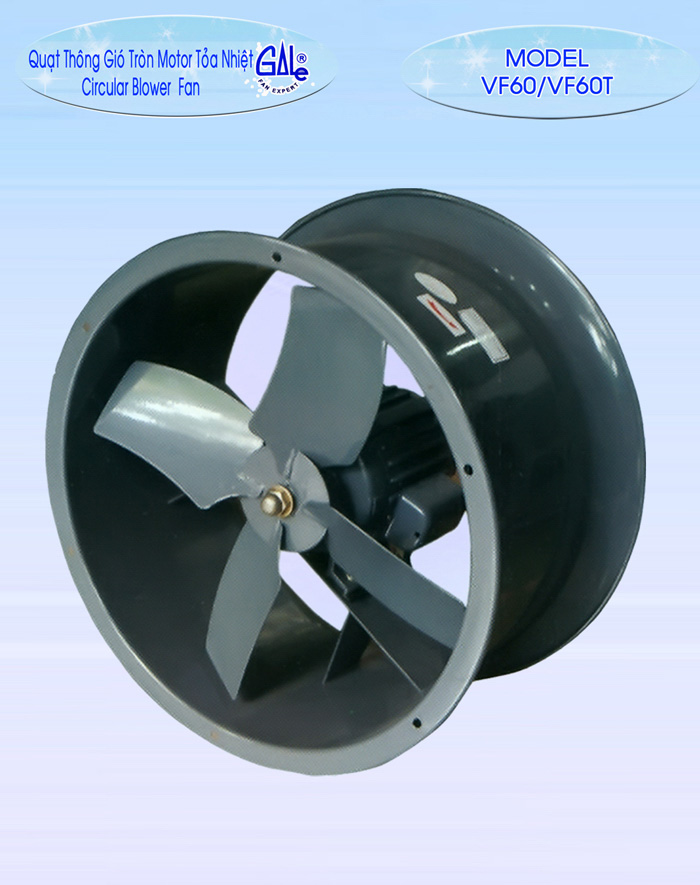 Quạt thông gió công nghiệp tròn Gale VF60 vỏ mô tơ khía, 4 lá cánh, thuộc nhóm quạt thông gió công nghiệp tròn công suất nhỏ,