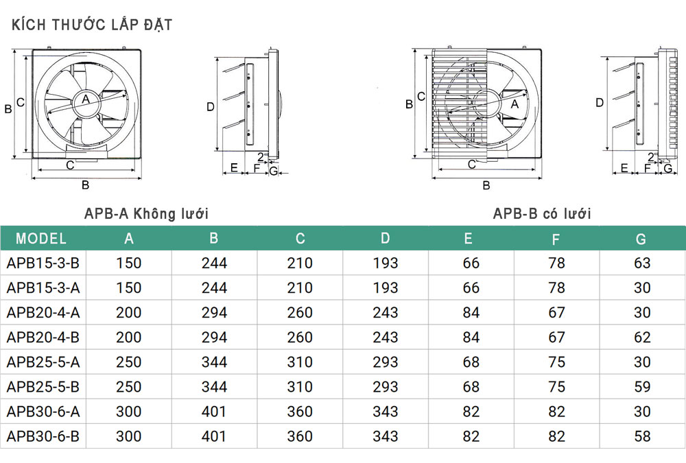 Quạt thông gió gắn tường Nedfon APB20-4-B