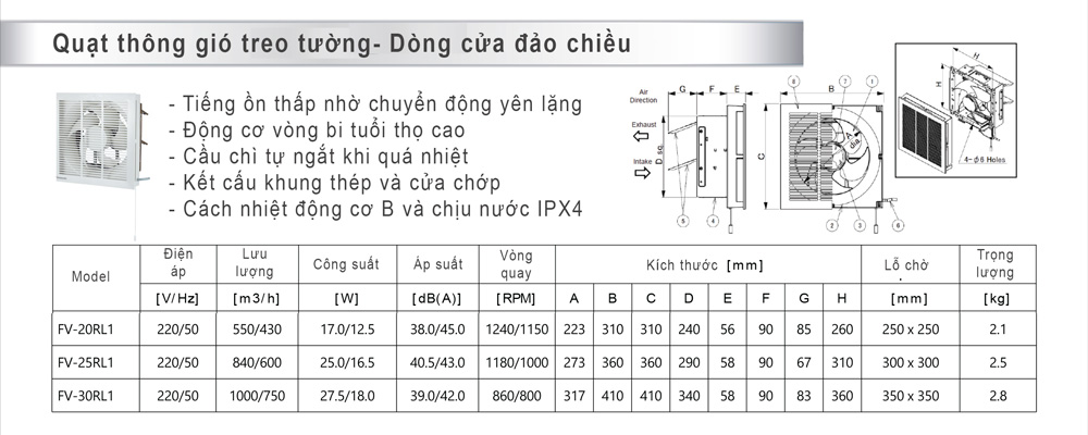 Đặc điểm chính: Quạt thông gió gắn tường Panasonic FV-30RL1