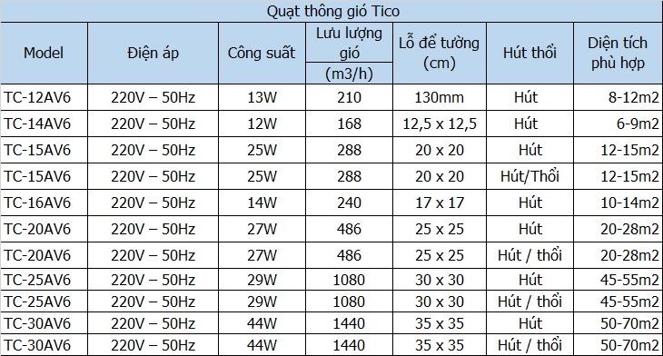 | Tên sản phẩm | Quạt thông gió gắn tường Tico TC-12AV6 |