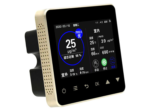 Theo dõi các chỉ số nhiệt độ, độ ẩm và nồng độ CO2, PM2.5, PM10, VOC.
