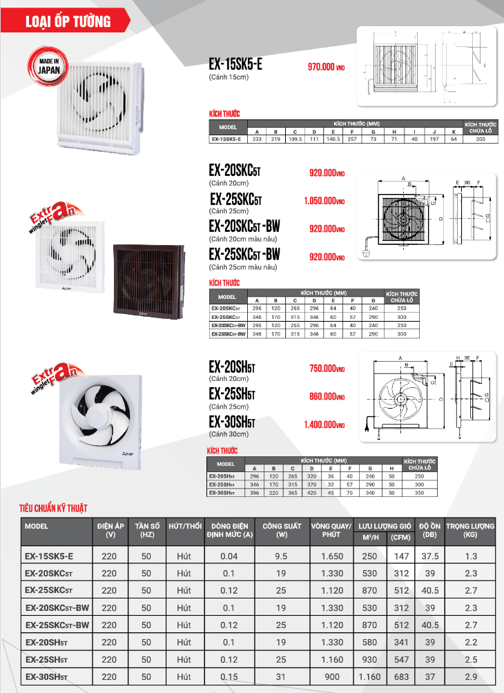 Kích thước lắp đặt Quạt thông gió Mitsubishi EX-20SKC5T-BW
