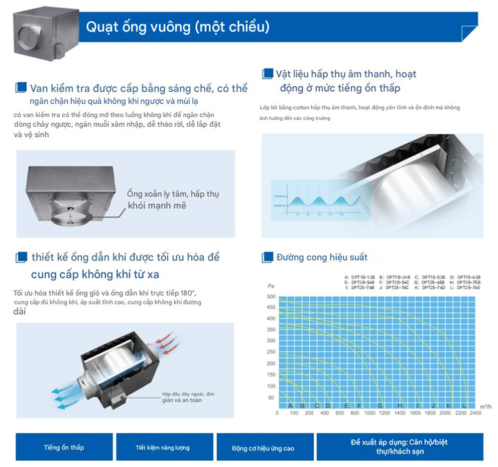 Phù hợp cho các căn hộ, thông gió biệt thự, tòa nhà văn phòng, văn phòng hội nghị, trung tâm thương mại, nhà hàng, khách sạn...