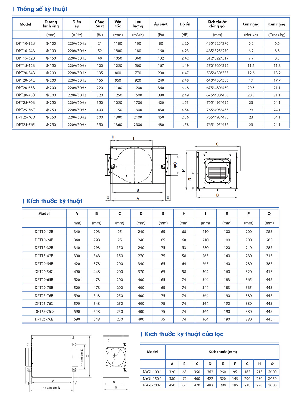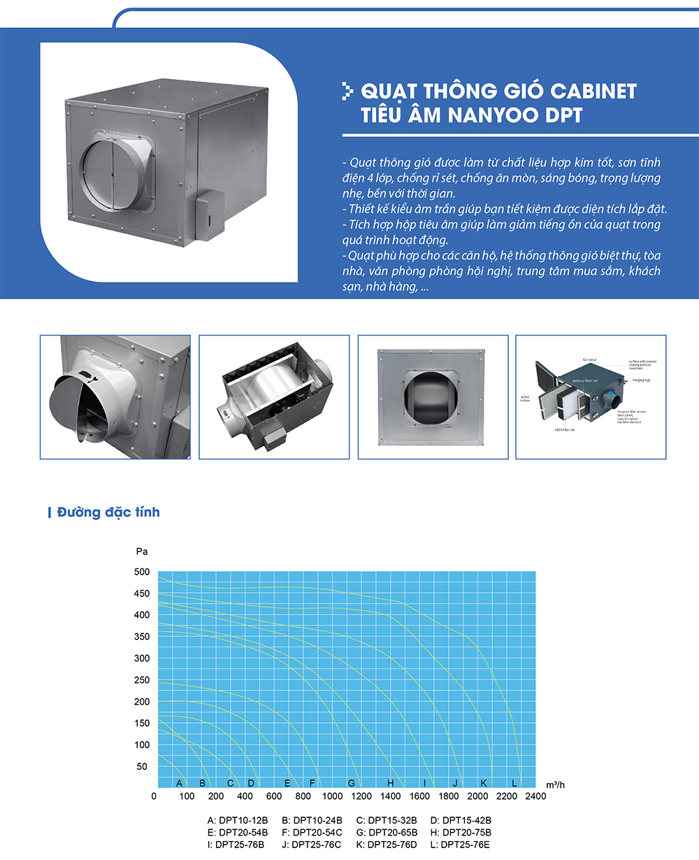 Quạt thông gió nối ống dạng hộp Nanyoo DPT20-54C