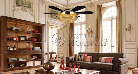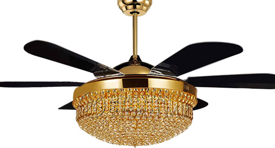 Sớm nhận biết được giá trị thẩm mỹ trường tồn với thời gian của những chiếc đèn chùm, nhà sản xuất quạt hàng đầu trên Thế giới Mountain Air đã cho ra mắt mẫu thiết kế quạt trần Wegarce cánh cụp WG 2002846 đẹp đến đáng kinh ngạc. Quạt là sự kết hợp tuyệt vời giữa quạt trần truyền thống và đèn chùm pha lê lấp lánh. Đây có thể xem là một sự kết hợp độc đáo giữa hai yếu tố vô cùng được chú trọng trong đời sống là phục vụ con người và trang trí không gian nội thất. Quạt gồm năm cánh quạt được làm từ nhựa Mica - một loại nhựa dẻo, được dùng để thay thế thủy tinh. Khi khởi động năm cánh quạt sẽ từ từ uyển chuyển bung ra như những cánh hoa thùy mị tạo gió, khi dừng hoạt động chúng sẽ lại dịu dàng khép lại về phía trục quạt. Chao đèn có kích thước tương đương với những chiếc đèn chùm thông thường, kết cấu đối xứng tâm, nhiều tầng, nhiều vòng. Trên đèn là những hạt pha lê hình giọt nước màu vàng kim được đính vào làm cho ánh sáng tán sắc lấp lánh. Chất liệu của những “viên lấp lánh” này quyết định toàn bộ giá trị đèn, mang lại chất lượng ánh sáng tuyệt hảo nhất.