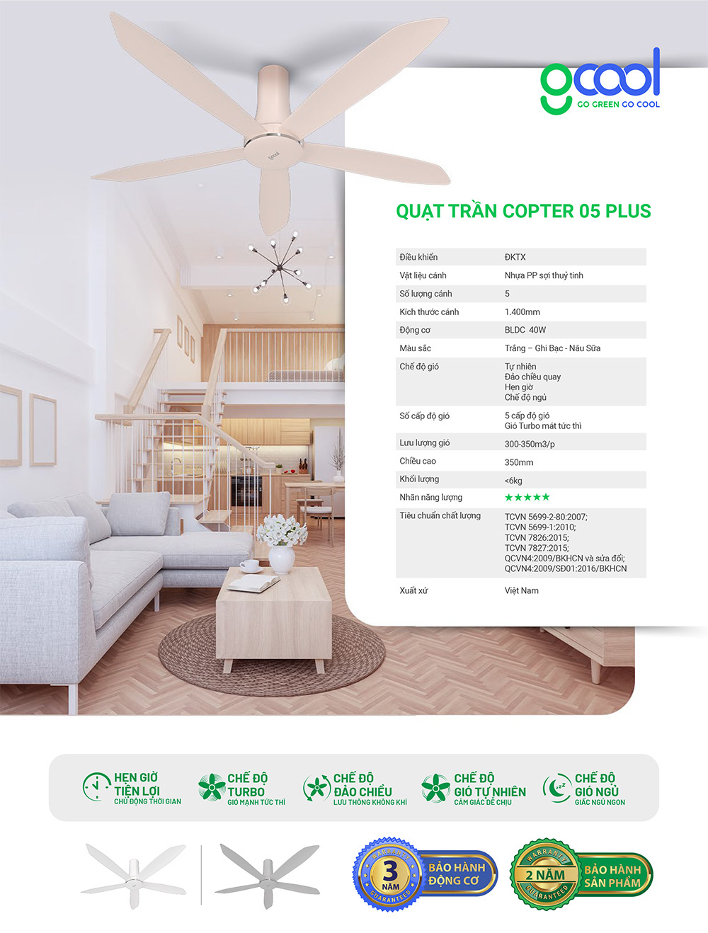 | Tên sản phẩm | Quạt trần Gcool Copter 05RL |