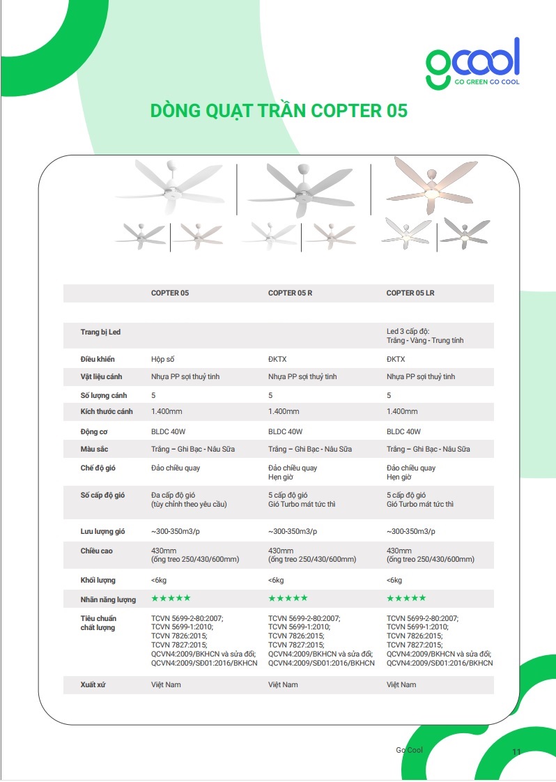 | Tên sản phẩm | Quạt trần Gcool Copter 05RL |