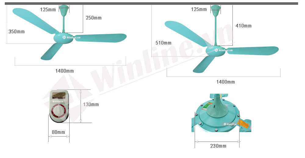 | Tên sản phẩm | Quạt trần Vinawind QT-1400N 3 cánh nhôm |