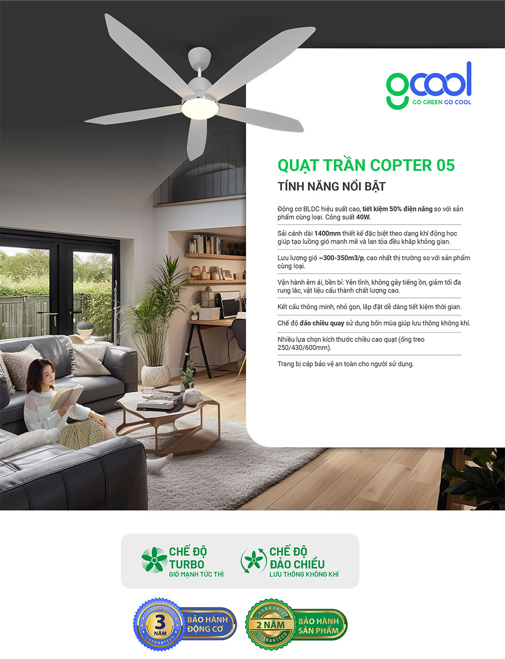 👉 Xem sản phẩm: Quạt Trần Gcool Copter 05R